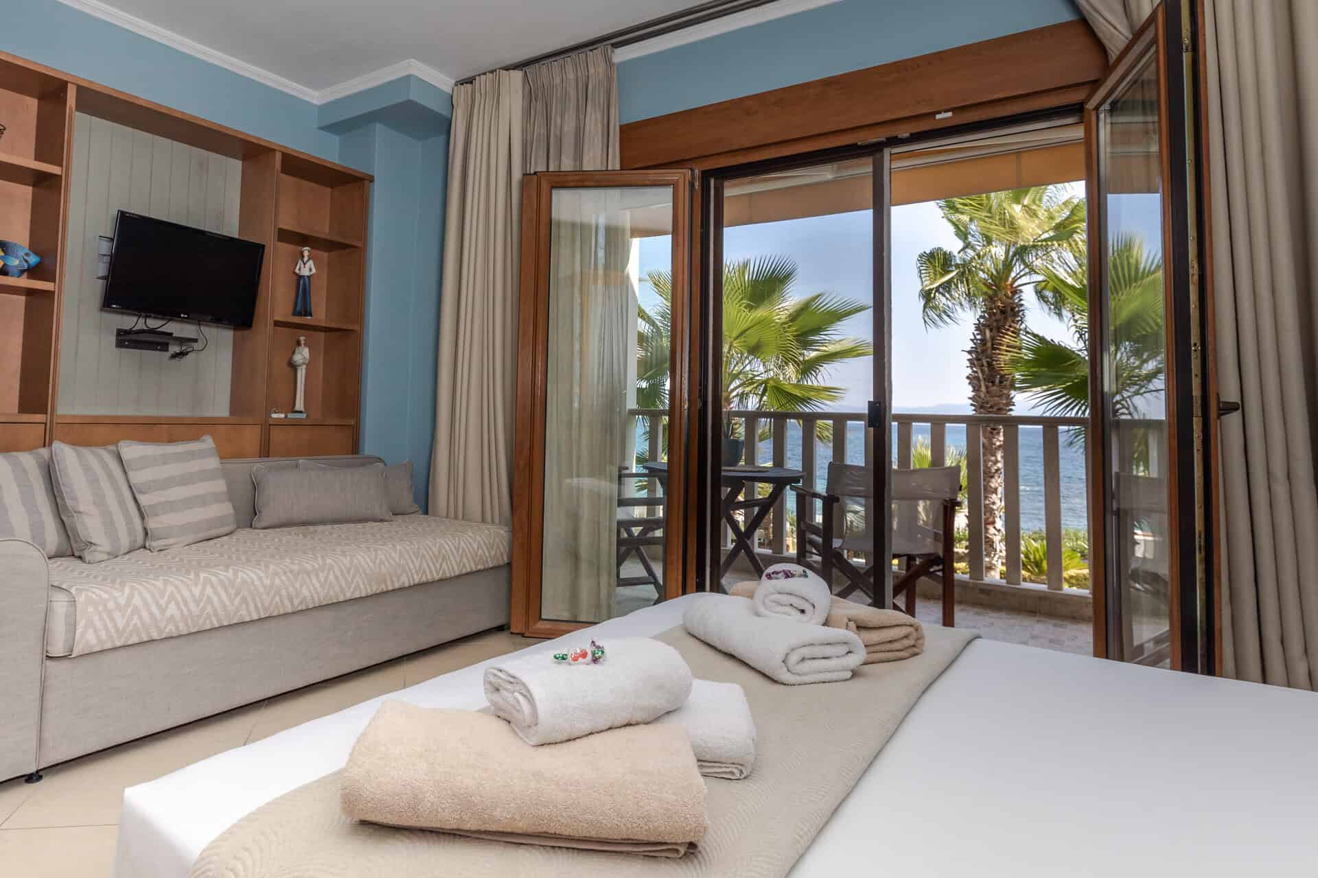 In the morning, you linger over coffee, watching the sun rise slowly behind Mount Athos. In the afternoon, you sink into a sweet siesta and in the evening, with the soft breeze cooling the air, you return to your favorite book, carried along by the quiet rhythm of the place.