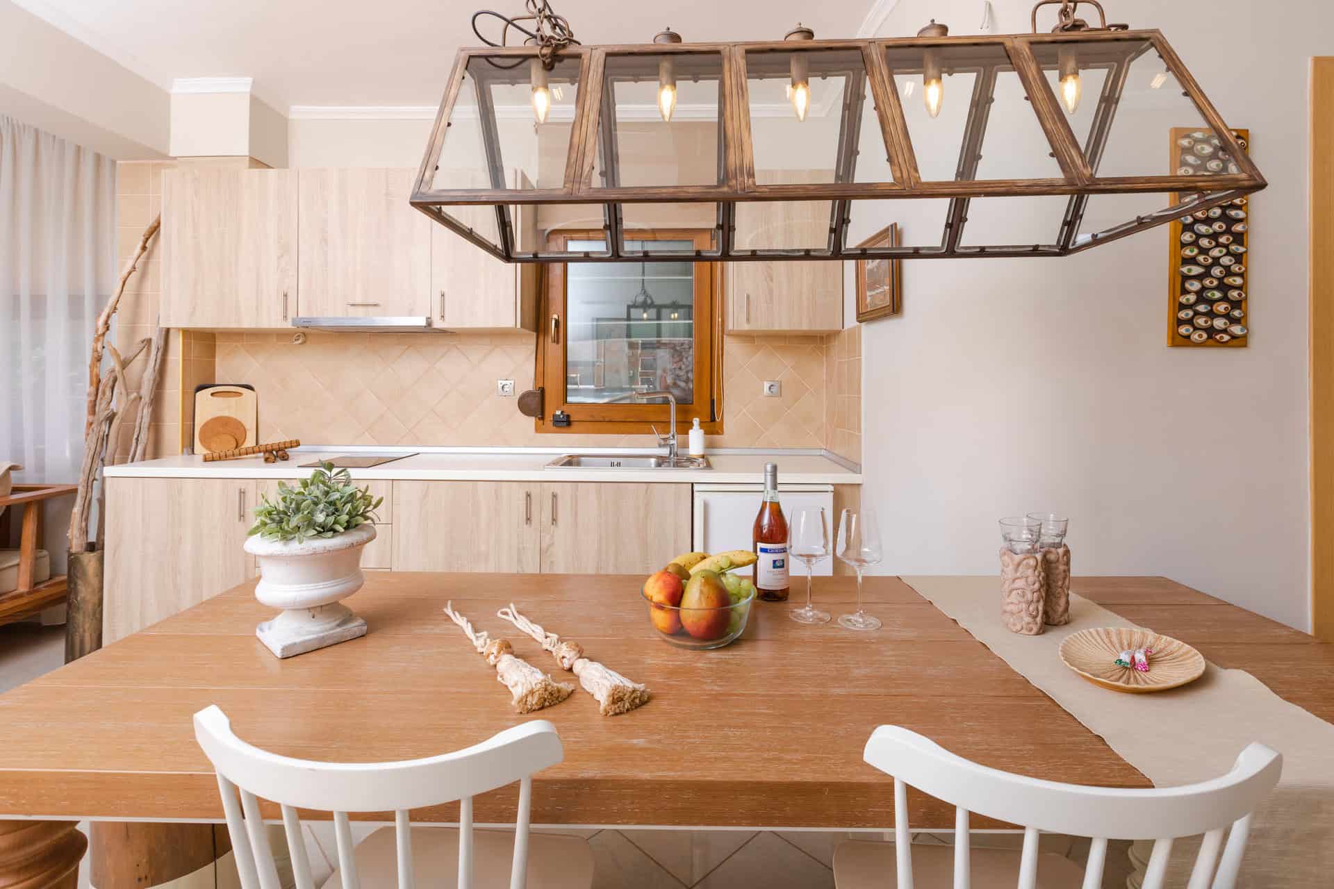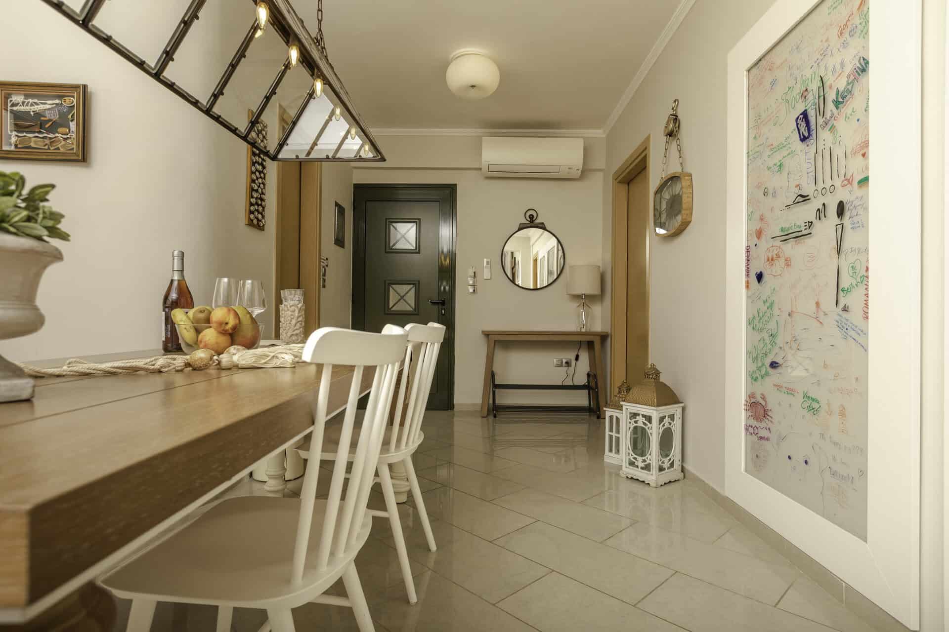 Morning light pours in from every angle, bathing the apartment in a gentle glow of purity and calm. You open the balcony door, and a cool breeze slips inside, carrying the murmur of waves, the song of birds, and the distant hum of a fishing boat making its way back to the harbour. Before you, the sea stretches wide, Mount Athos rises in the distance and the garden sways in shades of green. It’s time for that first coffee, unhurried, without plans, without time pressing in.